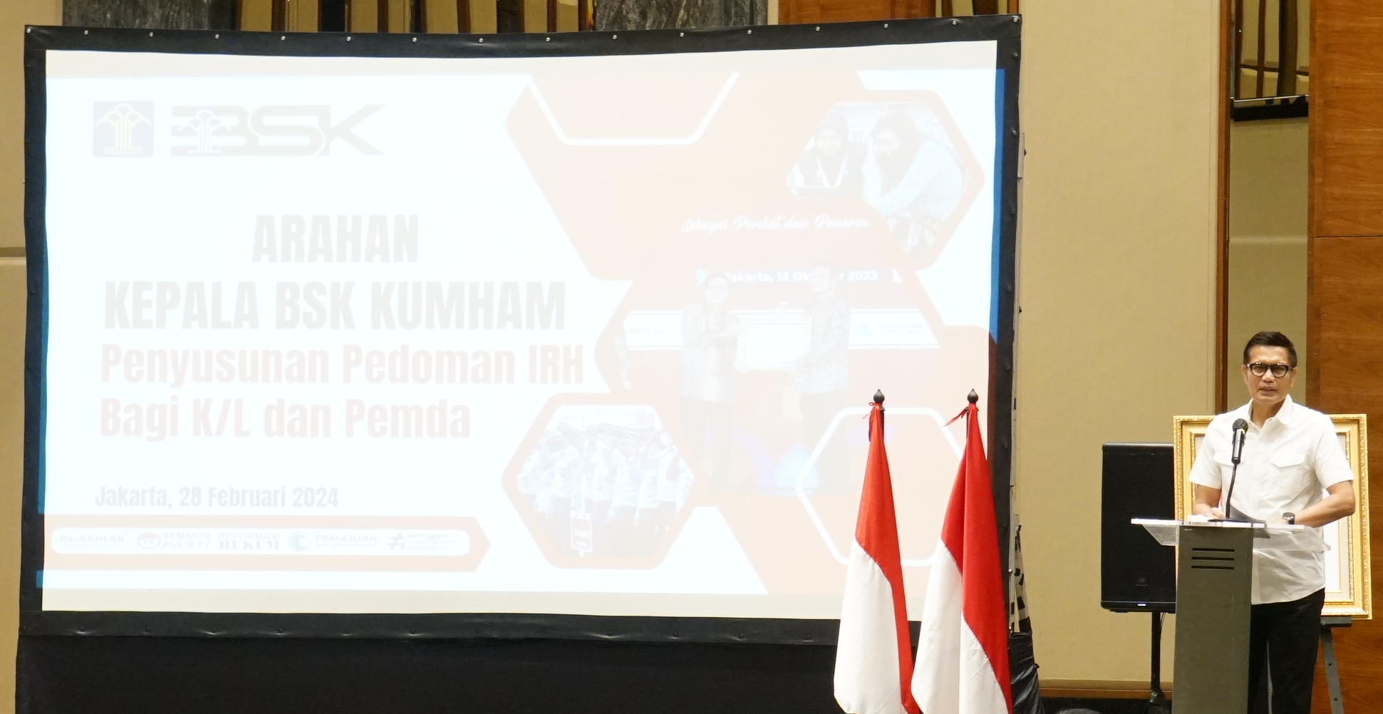 Jakarta, 13 Maret 2025 – Kementerian Hukum melalui Badan Strategi Kebijakan Hukum (BSK Hukum) menggelar Sosialisasi Pedoman Penilaian Nasional Indeks Reformasi Hukum (IRH) Tahun 2025 bagi Kementerian